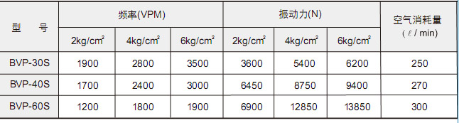 產品名稱:氣缸式空氣振動器BVP-40S BVP-30S氣動振動器BVP-60S 產品說明: (連續高頻振動)BVP-30S BVP-40S BVP-60S系列飛馳品牌