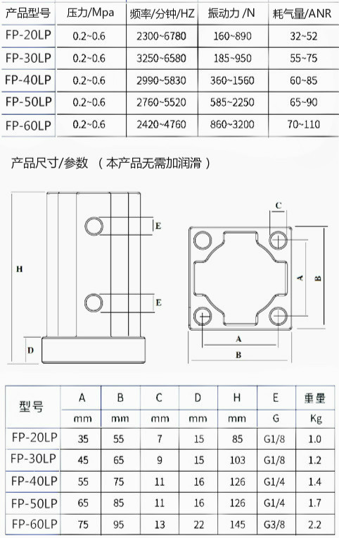 免潤滑活塞振動器FP-30-LP/免維護震動器FP-40-LP/FP-50-LP
